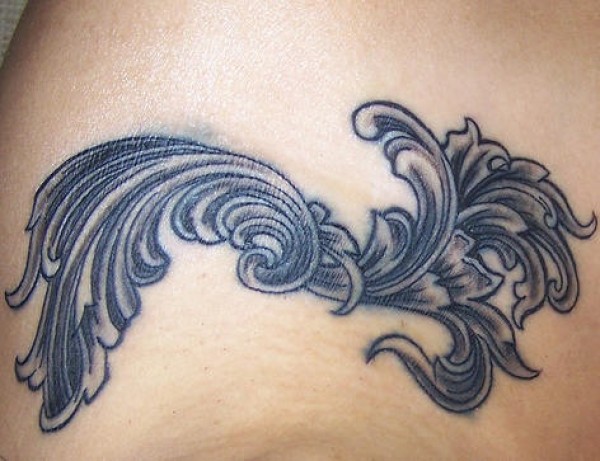 肩部黑灰curles图像纹身图案
