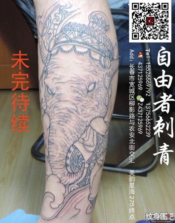 小腿上一款大象纹身图案_腿部纹身图案大全_纹身图吧