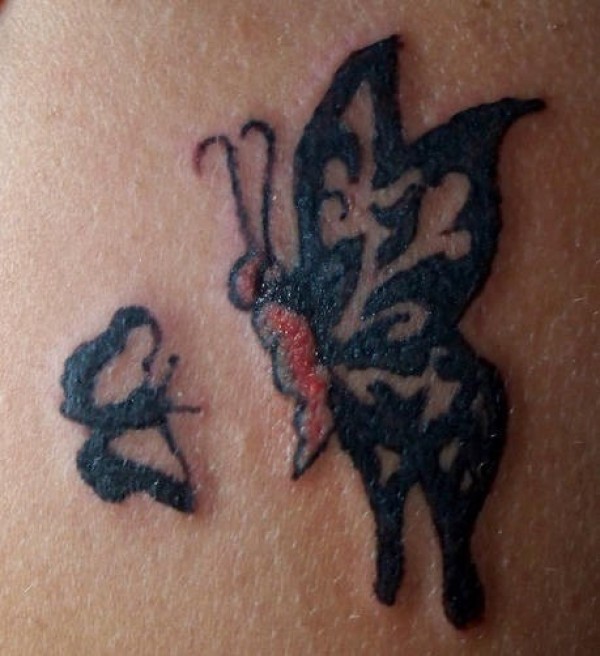 肩部彩色两只蝴蝶飞舞纹身图案