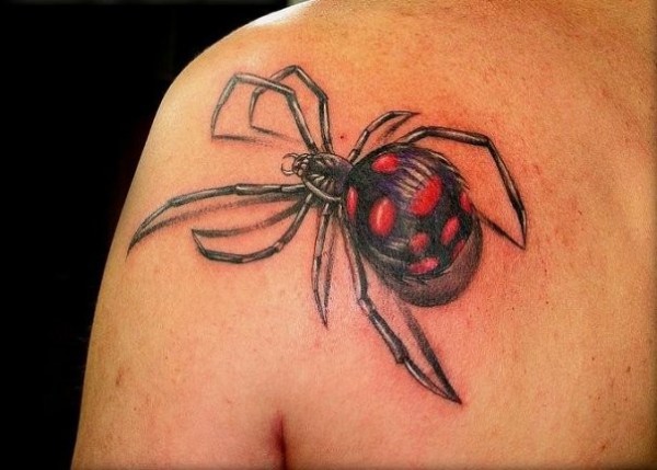 肩部彩色3D蜘蛛纹身图案