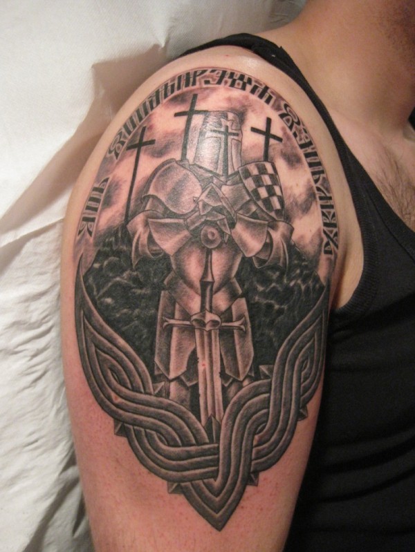 肩部黑棕色装甲战士纹身图案