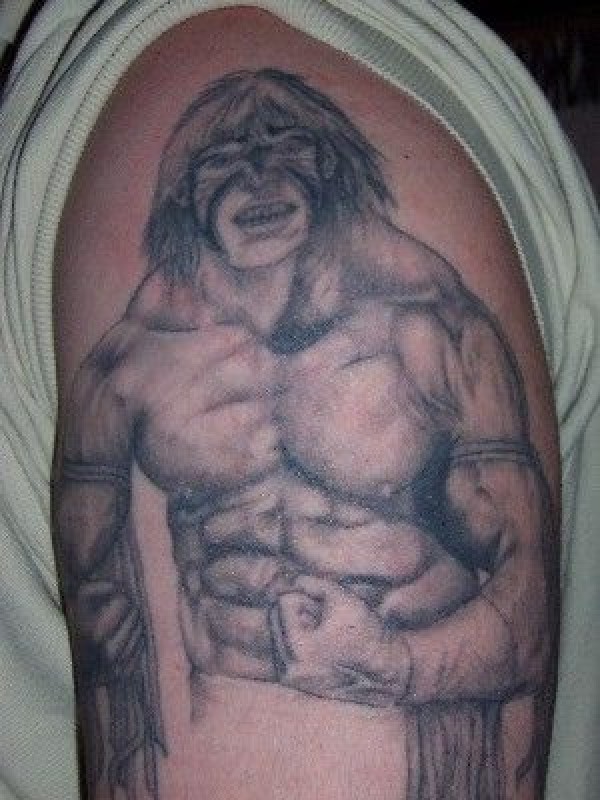 肩部黑灰维京战士纹身图案