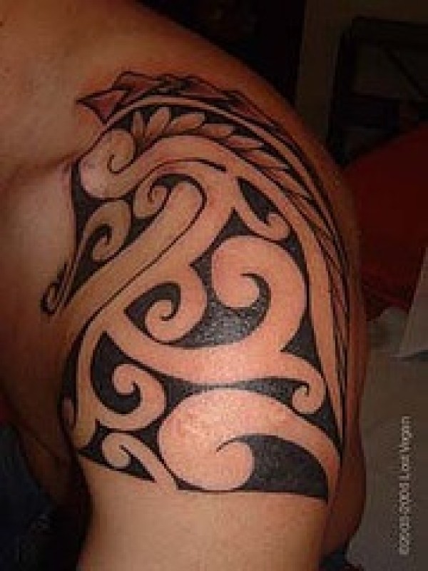 肩部黑色部落图腾纹身图案
