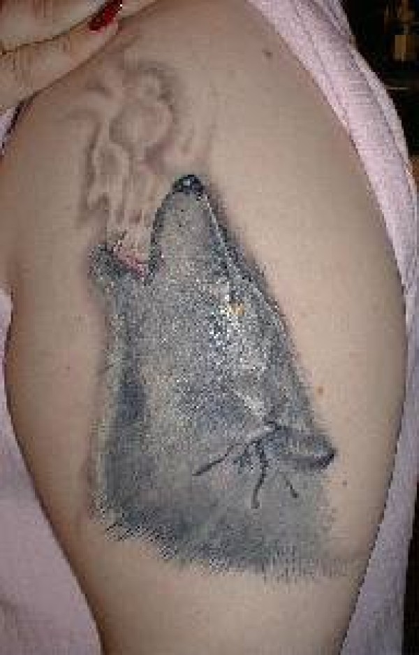 肩部银灰色狼头纹身图片