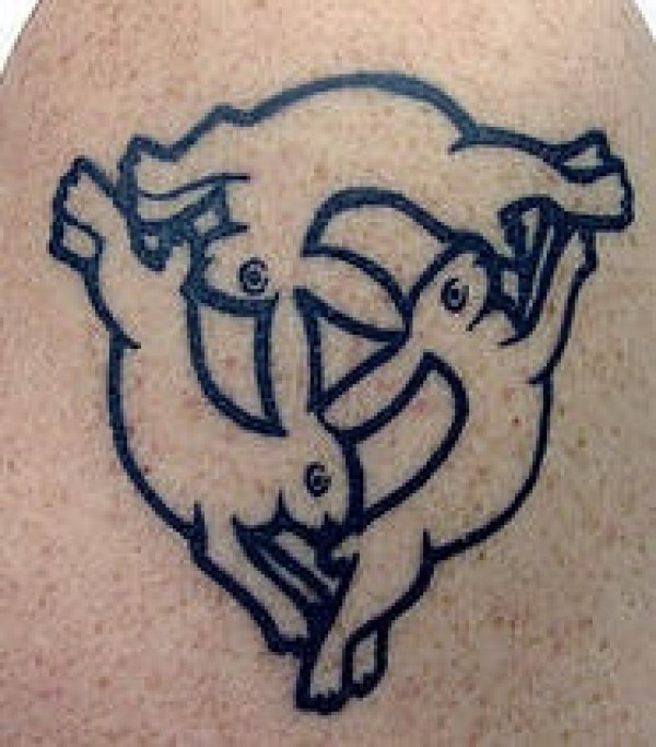 肩膀上三连接运行野兔纹身图案
