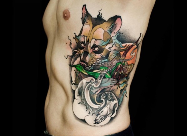 令人惊叹的New School彩色大花狸纹身图案