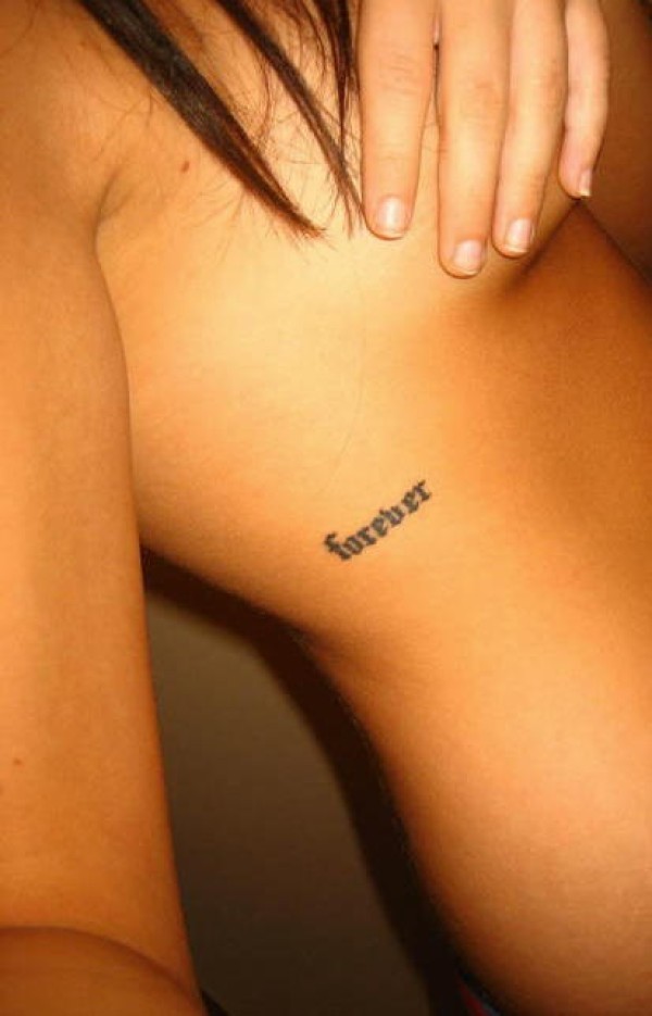 女性腰侧英文字母纹身图案