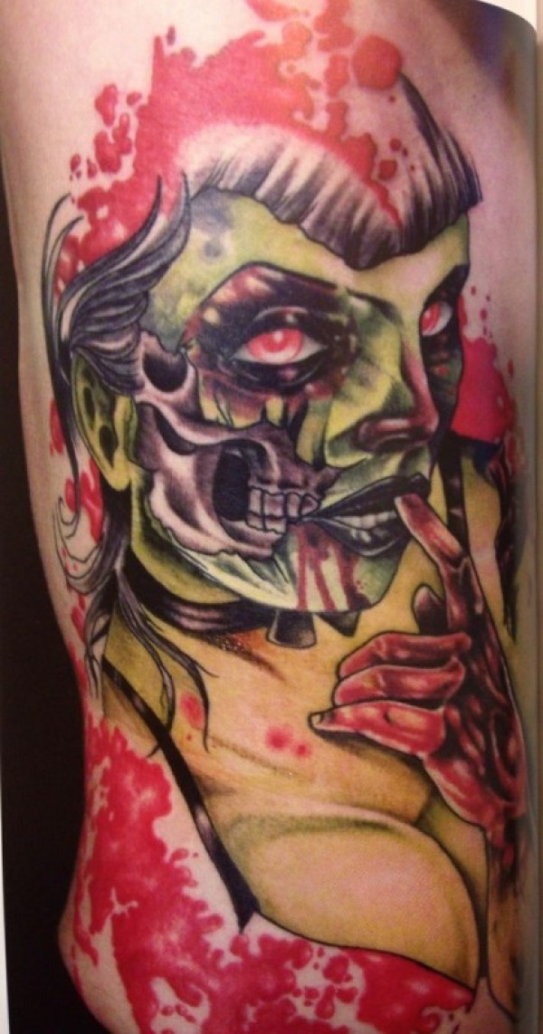 腰侧彩绘诱人的血腥僵尸妇女纹身图案
