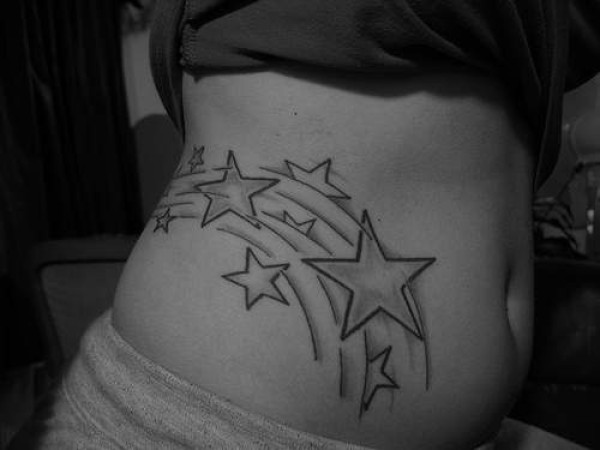腰侧黑灰五角星纹身图案