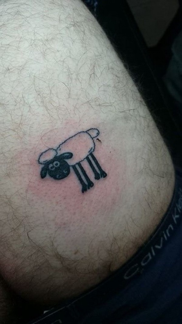 腰侧简单黑白绵羊纹身图案