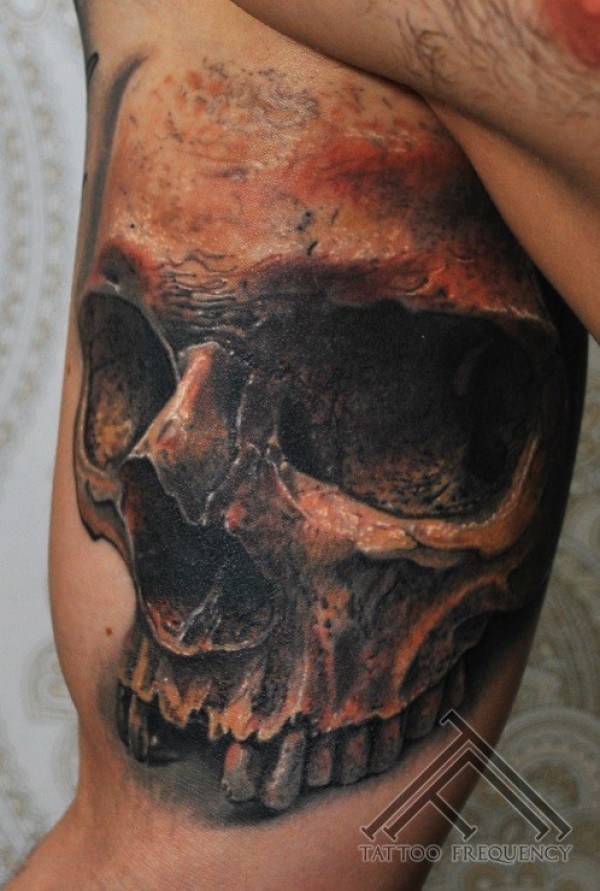 现实主义风手臂人类头骨纹身图案