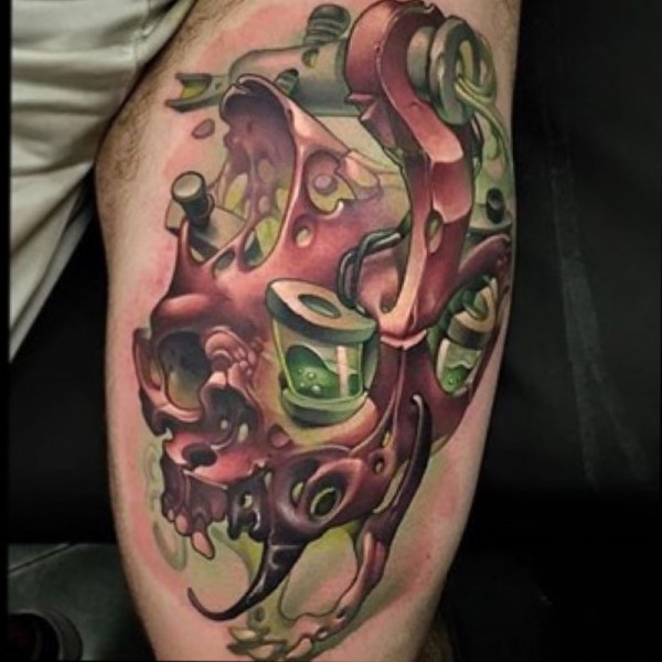 腿部新风格彩色神秘骷髅与化学纹身图案