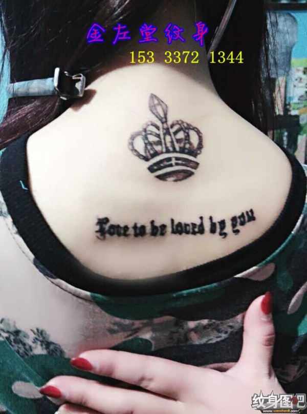 英文字体和皇冠纹身安阳水冶纹身金左堂纹身店工作室盖疤修改纹身 15333721344