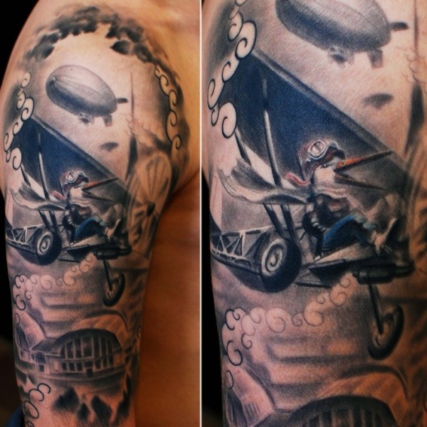 手臂old school彩绘鸟在飞机纹身图案