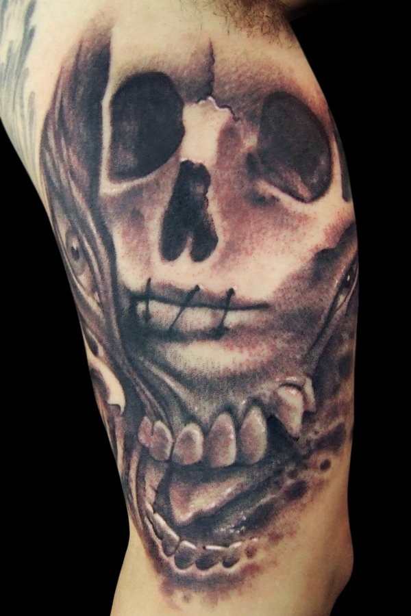 手臂黑灰骷髅纹身图案
