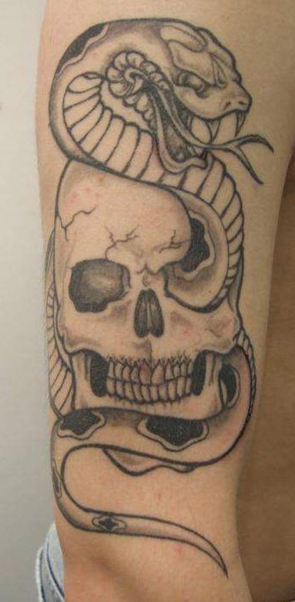手臂黑白蛇和骷髅纹身图案