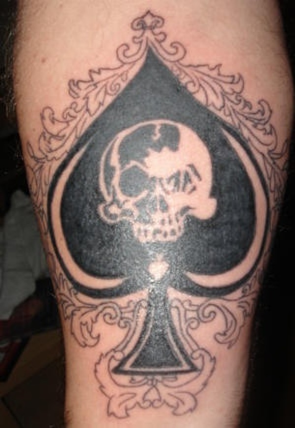 腿部黑桃骷髅花纹纹身图案