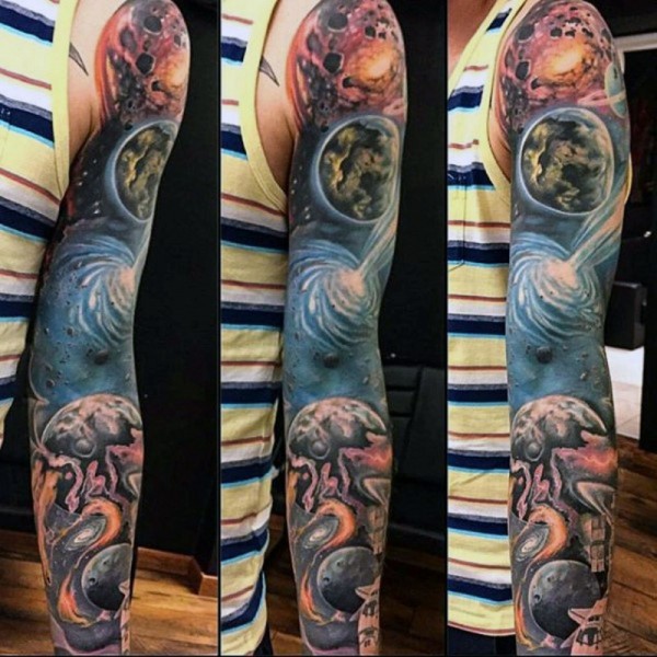 花臂五彩绚烂的大空间纹身图案