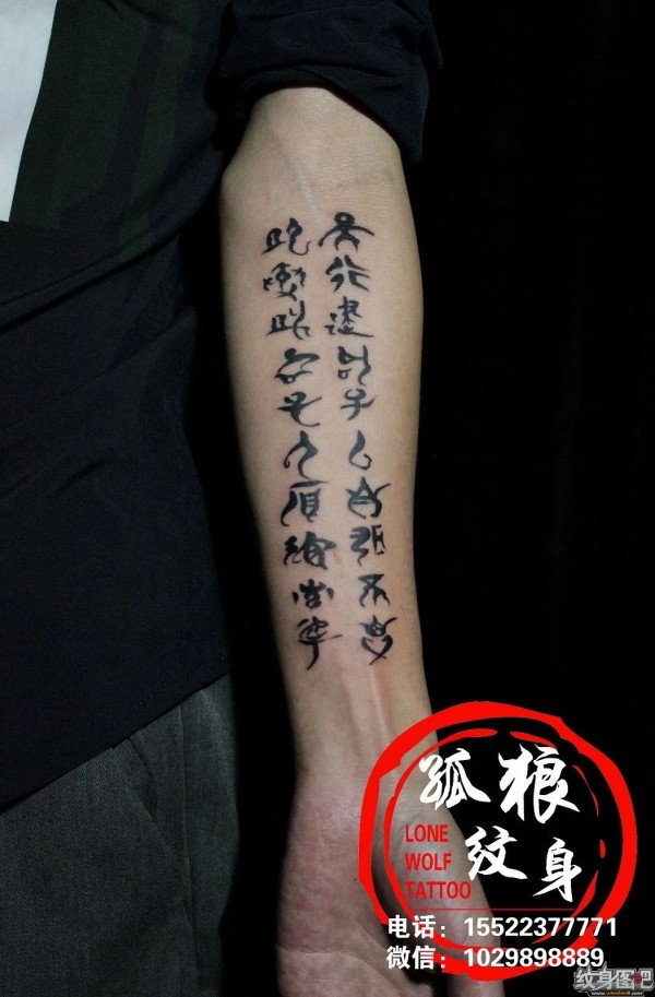 宝坻纹身 小臂古文字 古训 纹身 孤狼作品 天津
