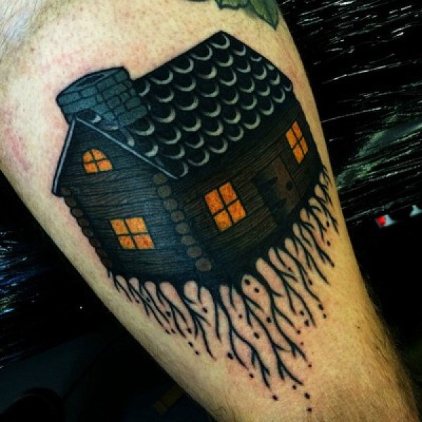 腿部彩色房子纹身图案