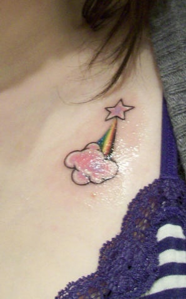 肩部彩色小星星和彩虹纹身图案