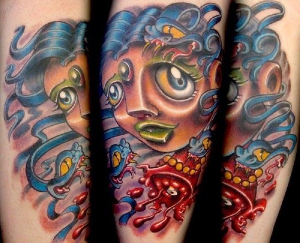 手臂彩色血腥女人与蛇纹身图案