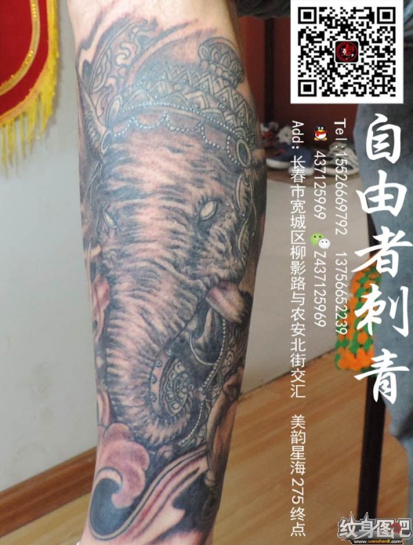 小腿上一款大象纹身图案_腿部纹身图案大全_纹身图吧