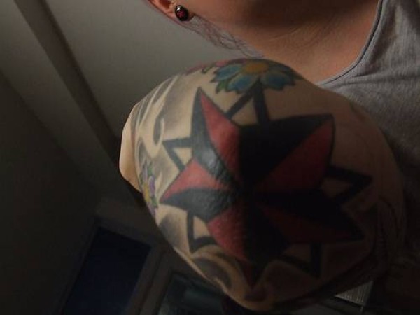肘上的彩色星纹身图案