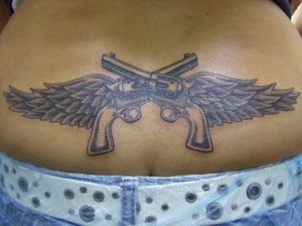 腹部翅膀手枪纹身图案
