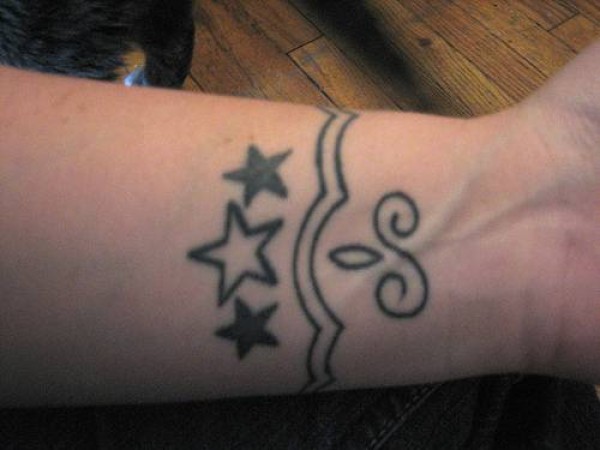 手腕上黑白星星纹身图案