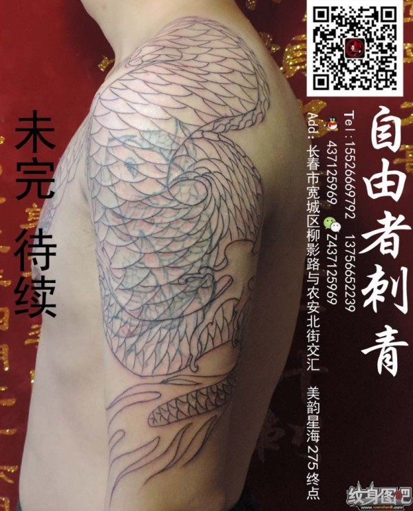 日式手彫刺青作品—半甲龙很感谢客户认可手彫刺青,手彫是日本纹身的手工雕刻技术,时间可以追溯到日本17世纪的江户时代。19世纪,手彫技术被日本黑帮挪用,被用作入会仪式,象征着从此就是江湖中人。在日式传统