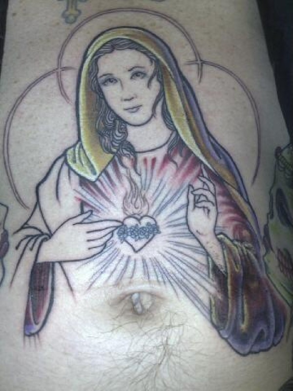 腹部彩色圣母纹身图案