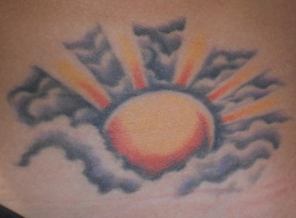 彩色闪耀的太阳在云纹身图案