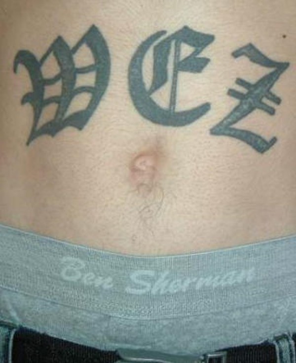 腹部花体字母纹身图片