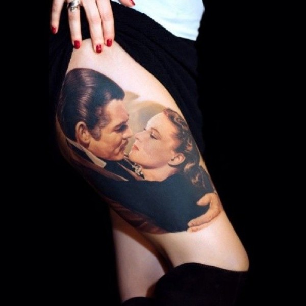 腿部写实照片纹身图案
