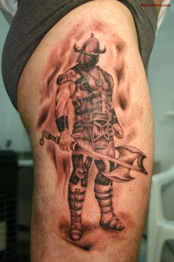 腿部武士纹身图案