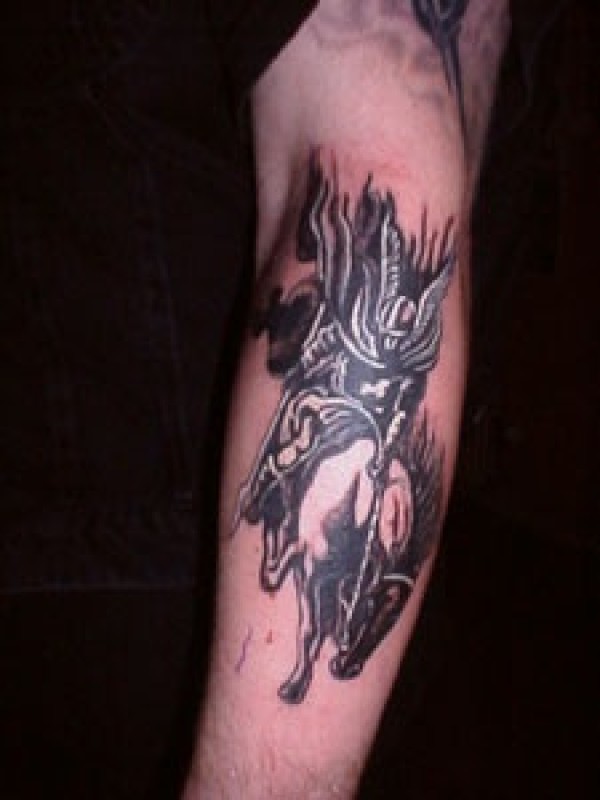 手臂黑墨水的维京战士纹身图案