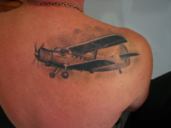 老式飞机肩胛骨纹身图案