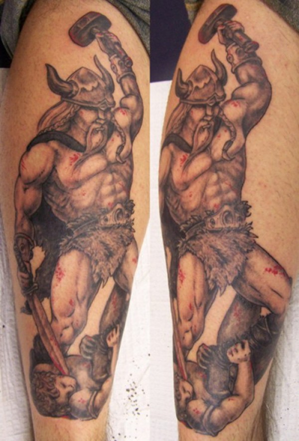 手臂强大的维京战士锤纹身图案