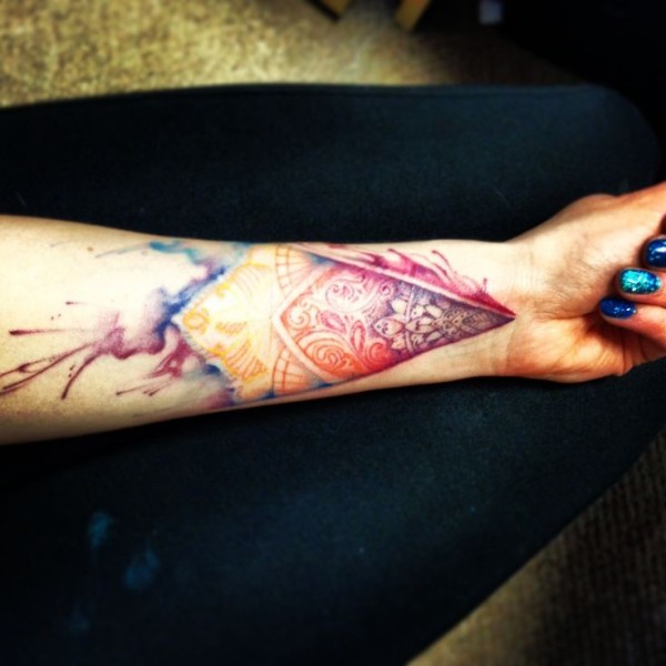 手臂水彩画风格的神秘图纹身图案