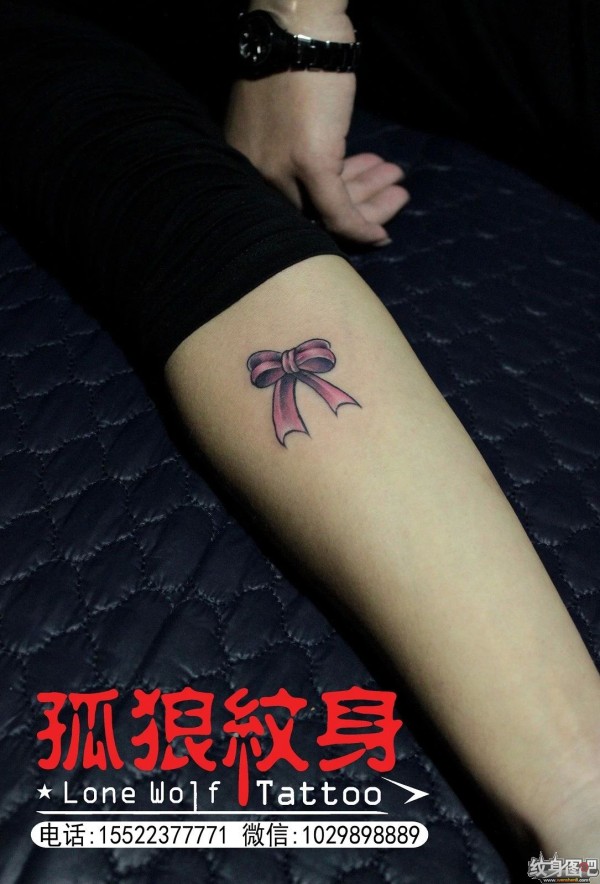 美女小臂彩色蝴蝶结纹身 宝坻孤狼纹身工作室作品 天津