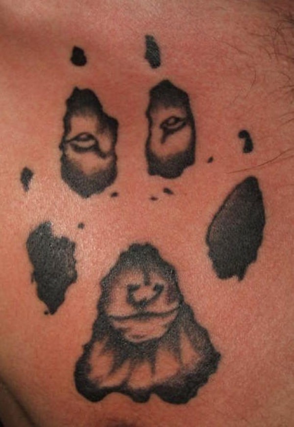 黑白狼脚印纹身图案