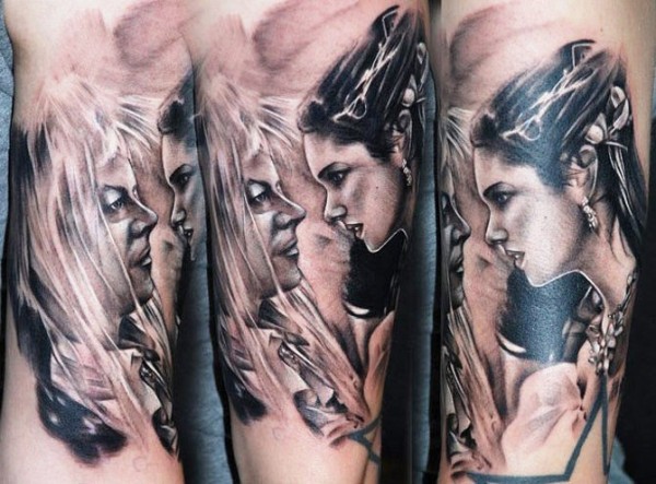 黑白插画风格的女人纹身