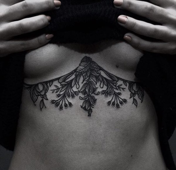 女生胸部装饰风格花卉纹身图案