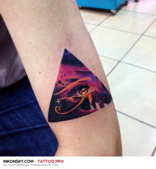 手臂三角形与荷鲁斯之眼星空纹身图案