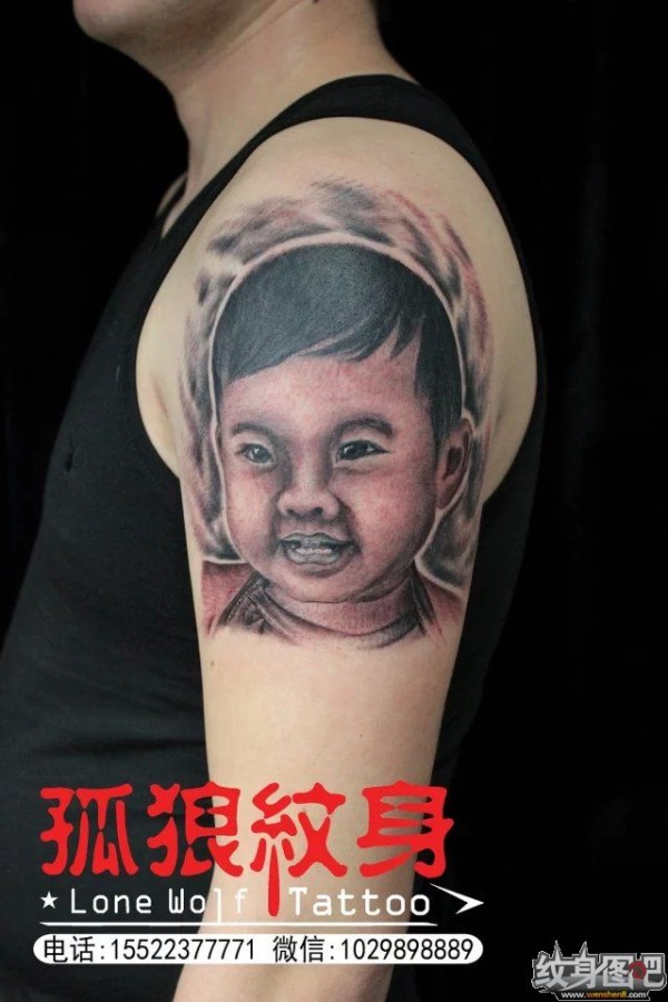 大臂肖像纹身 宝坻孤狼纹身工作室作品 天津