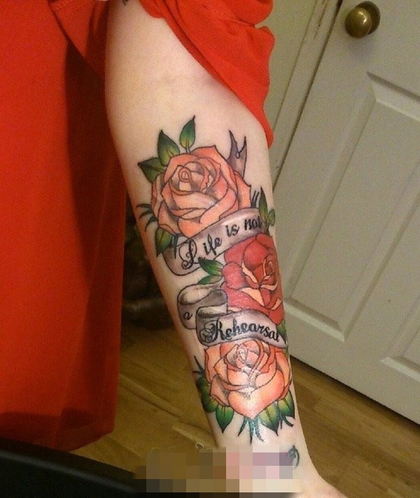 和实物非常相似的手臂花朵纹身图案