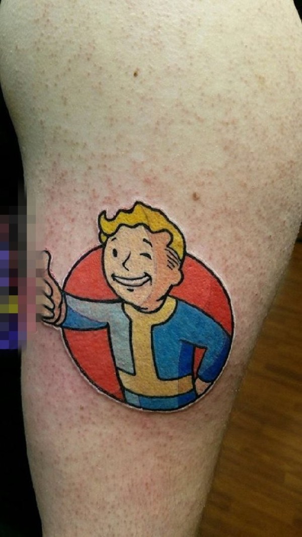 男生小腿上彩绘几何线条卡通人物肖像纹身图片