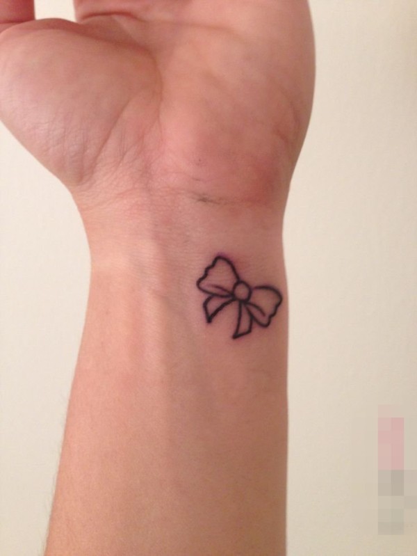 女生手腕上黑色线条简约蝴蝶结纹身图片