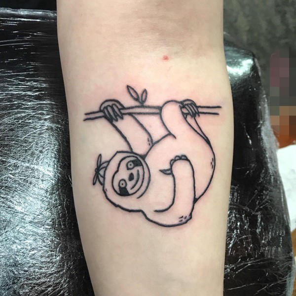 女生手臂上黑色小动物抽象线条树懒纹身图片
